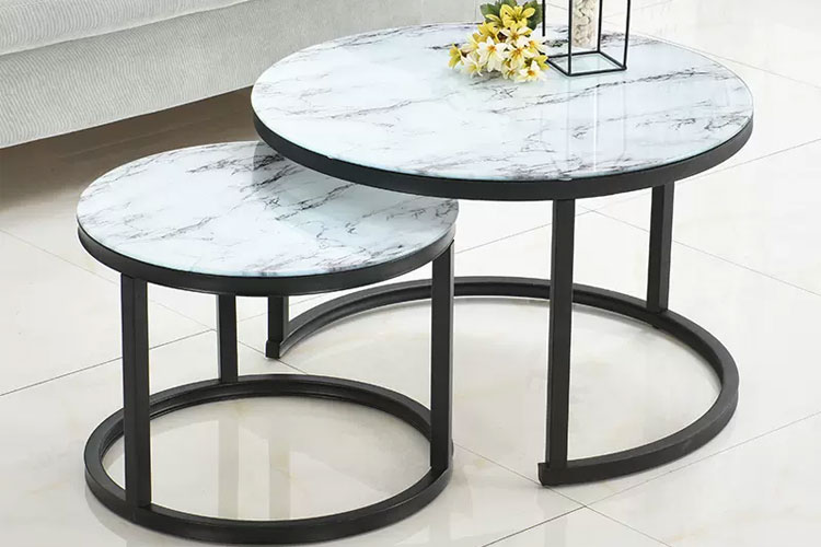 中花白大理石面+优质黑砂烤漆钢架